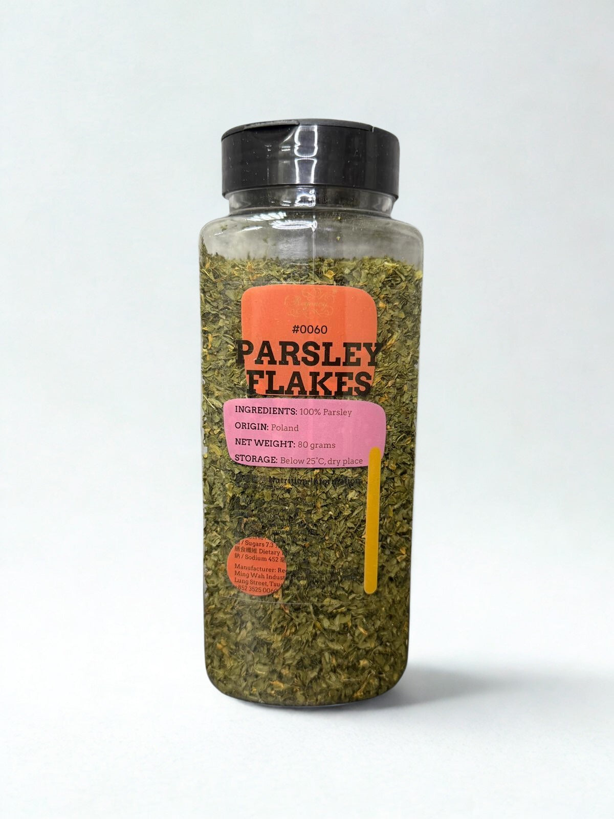 Parsley is a highly popular herb, used around the world in a range of cuisines to add rich herbal and cooling flavours. Regency Parsley comes from the mediterranean region in Egypt, it's natural habitat of centuries, and a fine producer of many herbs we use today. Here, Parsley tastes sweeter and richer than common herb varieties. Our parsley is also sundried for preserving the maximum flavour and aroma.